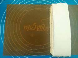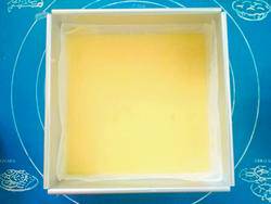倒入已经铺好油纸的磨具中,用刮板刮平表面,震出气泡。我用的是8寸方。
