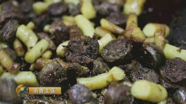这盘看着黑黢黢的东西叫筏子面肠,别看这盘食物看着并不好看,可是偏偏有很多人就好这口。筏子面肠这道菜也是兰州夜市上的一大招牌。