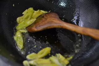 11、锅中倒入一点点底油煸香葱姜。
