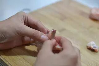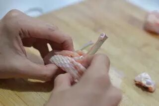 1、鸡翅先来去骨,鸡翅小的一头来一道斩断(经帅实践两头都可以)。
