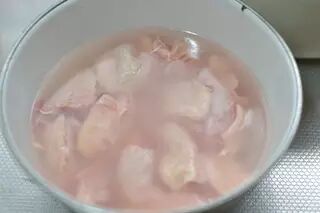 5、鸡翅肉用清水泡十分钟,去除血水。