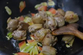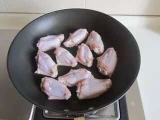 4、放入鸡翅翻炒半分钟。