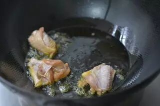 10、大约5-8分钟鸡翅呈现出金黄色即可,乘出备用(不要太久,不然不嫩了)。