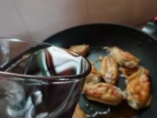13、倒入煎制好的鸡翅。