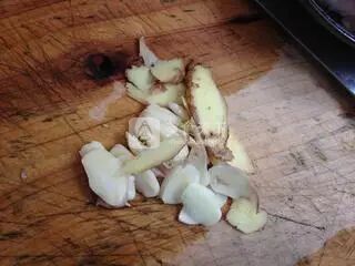 2、把大蒜和生姜.洗净切好。