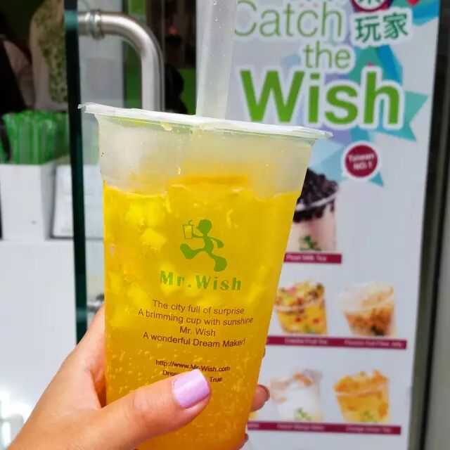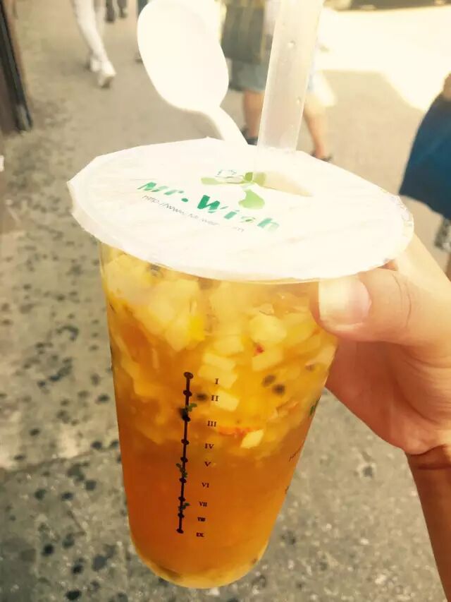 秋高气爽的季节里拽上一杯清爽的新鲜水果茶不能在美好了。Mr. Wish 在台湾就享誉盛名,他们主打的是各种新鲜的水果加入绿茶或是红茶内调和成种类丰富的饮品。十分健康清爽,很受年轻人的欢迎。我最喜欢他们家的招牌水果茶。