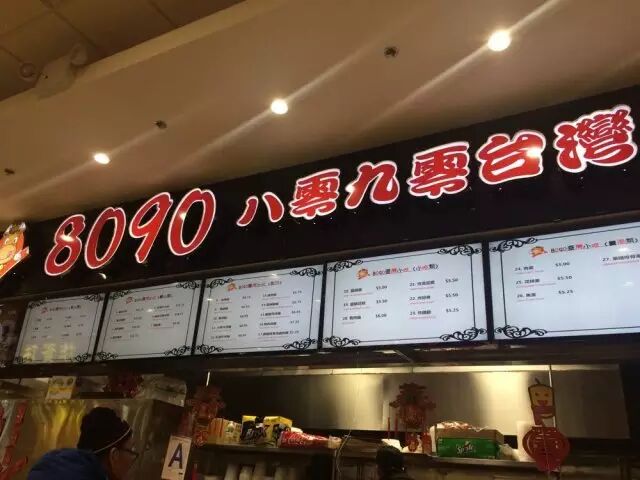 这家8090台湾小吃铺位于法拉盛纽约美食广场内,一走进大门就能看到这家铺位,门面特别大,人流也特别多。小店从老板娘、厨师到员工全是台湾人,而且还是一家人。这些小吃都是他们在台湾从小吃到大的,来了美国,想着这味儿,思念的魔力让他们想开一家地道的台湾小吃铺,而我们这些吃货就有福了,无需飞到台北,在这里就能大饱口福。