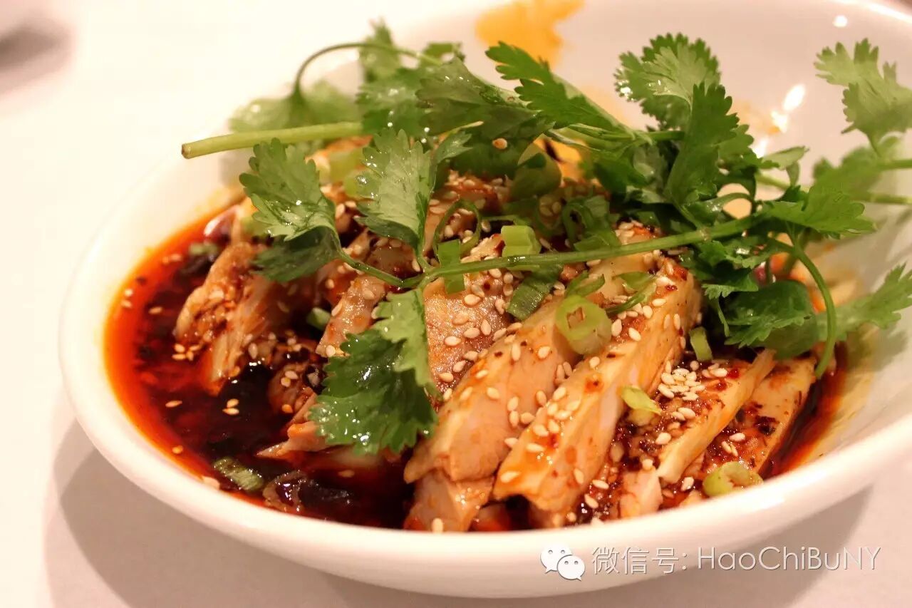 特色口水鸡($10.95/份 8/10分)。也和传统口感嫩嫩的口水鸡不太一样,腌制后肉口感比较硬香,颇有嚼头,所以这家是走“有嚼劲”路线的?哈哈~ 麻辣非常入味,不走寻常路的口水鸡。