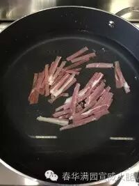 5、放入葱段,调味,关火,盛出碗里。注意:(火腿是咸的,根据个人用料多少,可以尝下咸淡,不够咸可加盐)鸡精和味精可加可不加,我就没加,原味好鲜。