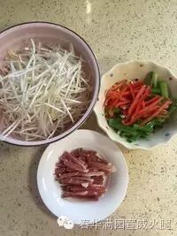 1、豆芽去掉头和尾,红椒切丝,葱切段、火一腿切丝备用