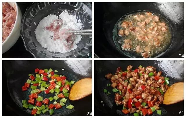5. 腌好的鸡丁沾一层薄淀粉,