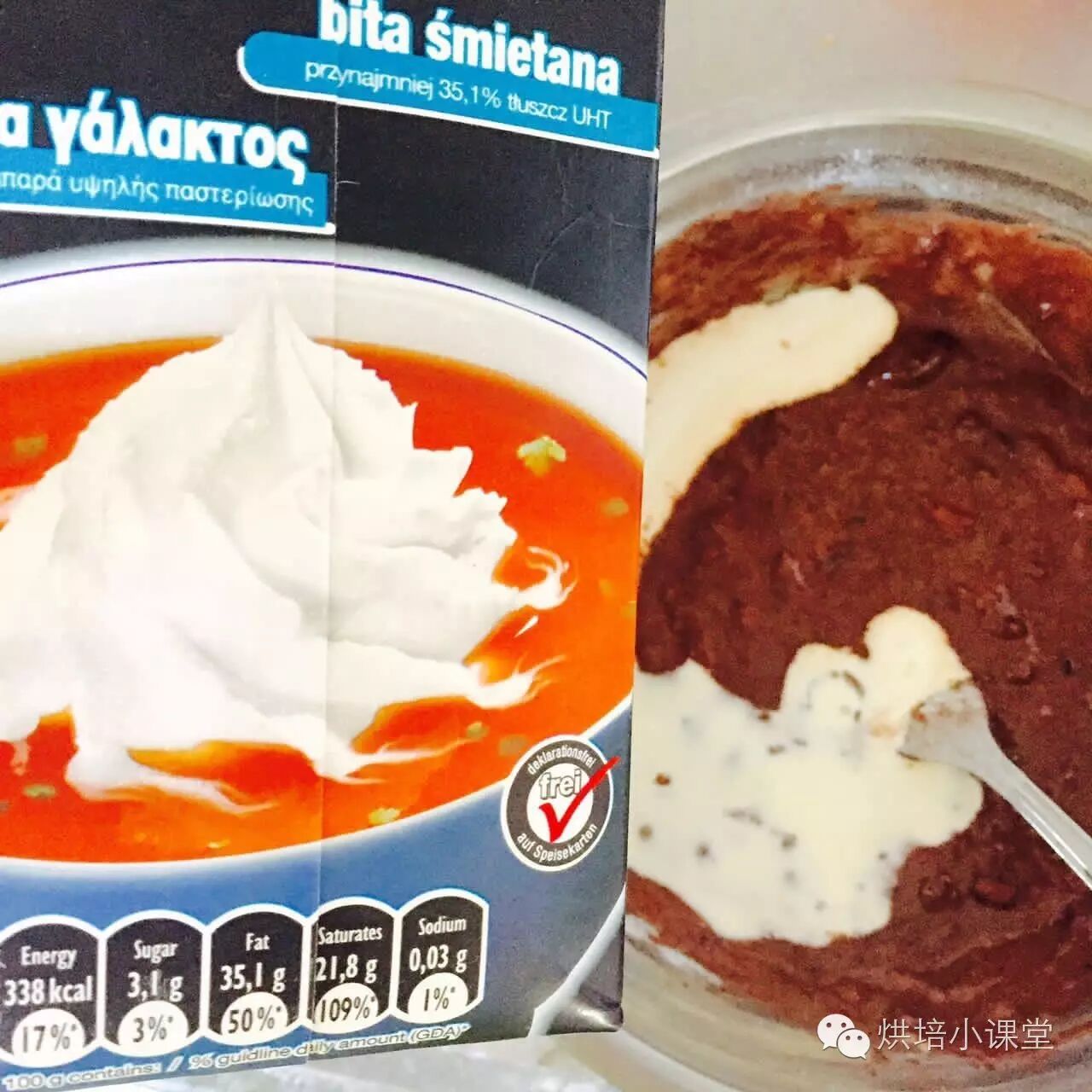 4.胆子大的兔小编加入淡奶油(放牛奶也是可以的),搅拌均匀