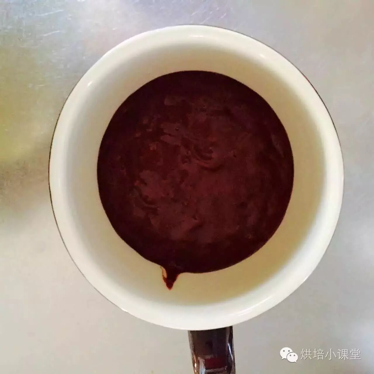 5.找一个马克杯(注意杯底写没写能用在微波炉里的字样,安全第一),将混合物倒进去,轻轻晃一晃,尽量把气泡排出