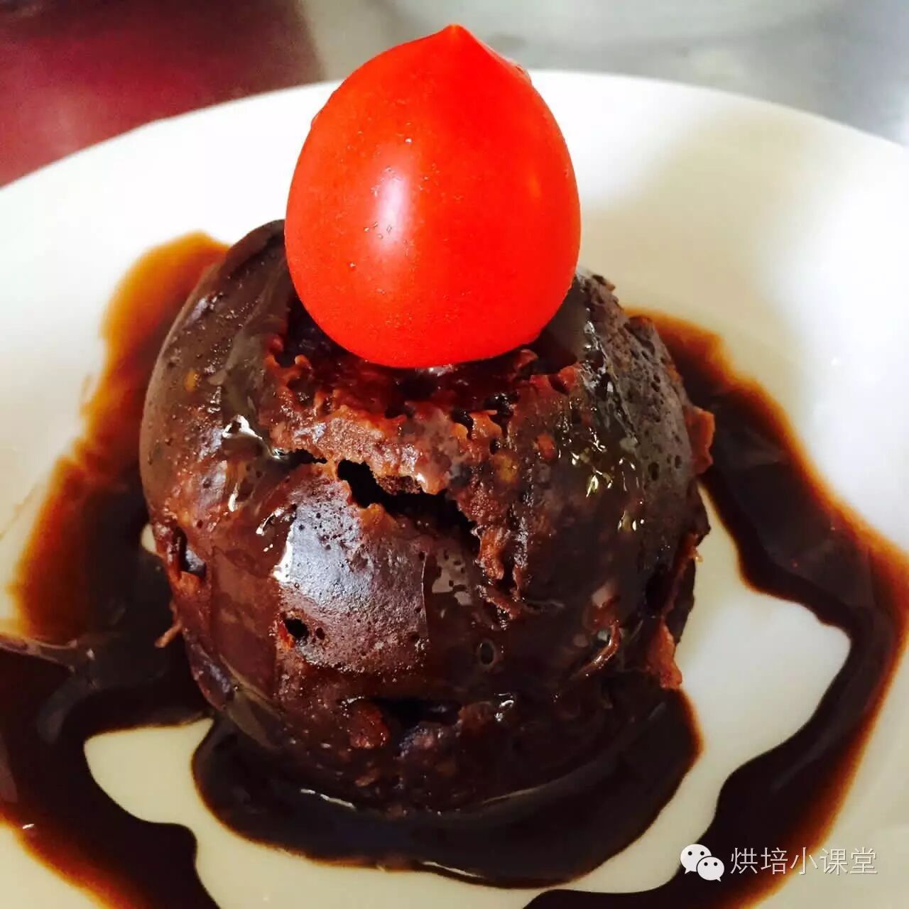 6.放进微波炉里2分钟,OK!拿出来倒扣在盘子里,装饰上红色的小水果就可以吃啦