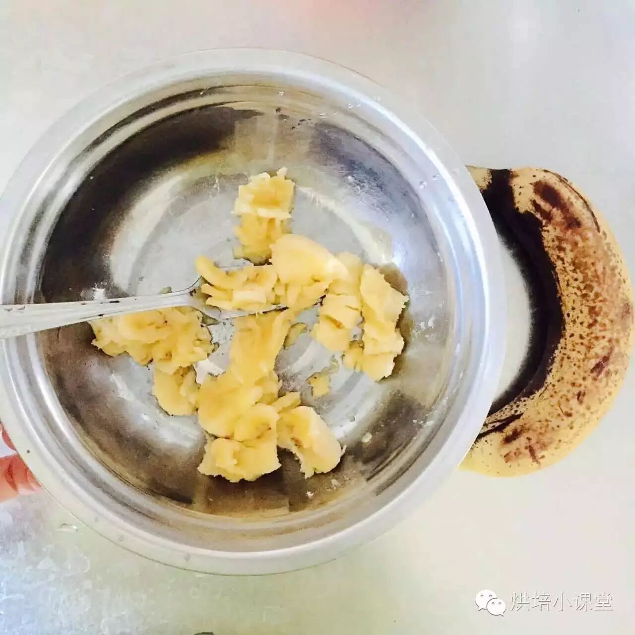 1.把香蕉在容器里碾碎