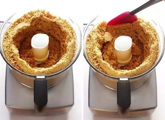 ▼2.将冷却后的芝麻倒入搅拌机进行搅打,期间需开盖将附在搅拌机边缘的粉末刮下。