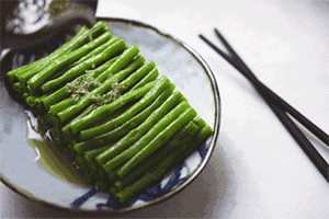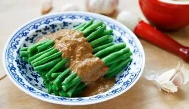 6. 最后将芝麻酱浇淋在豆角表面上;