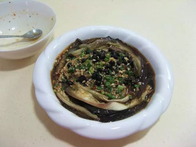 长茄子两根,大蒜数瓣,小葱两棵,辣豆豉一勺,生抽100克,醋100克,白糖20克,盐适量,香油数滴