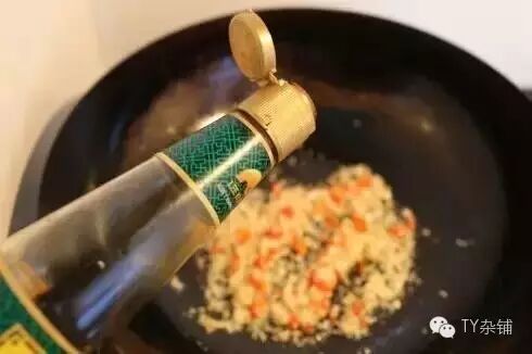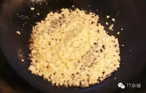 5.将有底油的锅开小火,倒入蒜末,翻炒出香味