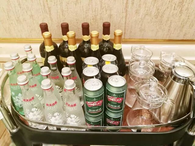 晚宴现场提供的酒水,张裕爱斐堡干红葡萄酒、干白葡萄酒成为了G20宴会的配餐用酒。