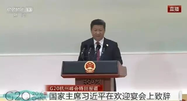 昨天下午,G20杭州峰会的大幕已经拉开。习近平主席主持峰会欢迎仪式、开幕式,并发表重要讲话。晚上,习近平夫妇迎接外方代表团夫妇,在杭州西子宾馆举行欢迎晚宴,国家主席习近平在晚宴上致辞。