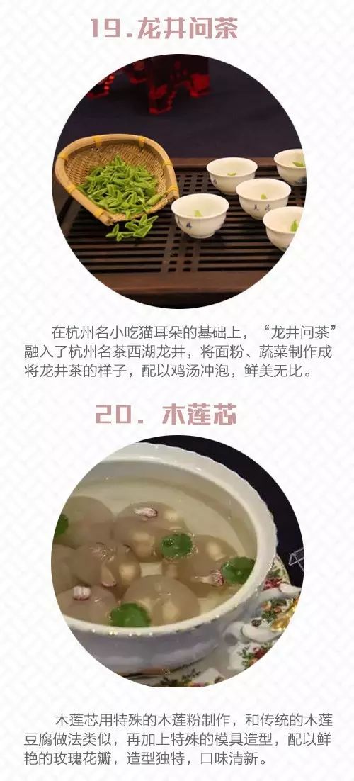 毫无疑问,G20峰会在杭州召开,招待各国领导人的国宴将主打精致的杭帮菜。今年4月,杭州市有关部门以迎接G20峰会为契机,在中国杭帮菜博物馆举办了杭帮菜菜品及服务技能大赛。其中最引人注目的,是大赛推选出了20道最具杭州特色的菜点,包括16道菜肴与4道点心。