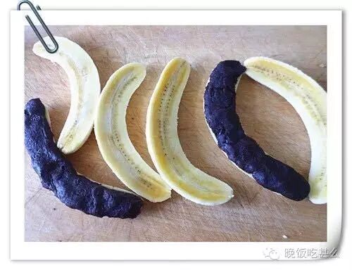 1. 香蕉去皮,顺长切开,用力背轻轻压扁成长条片;