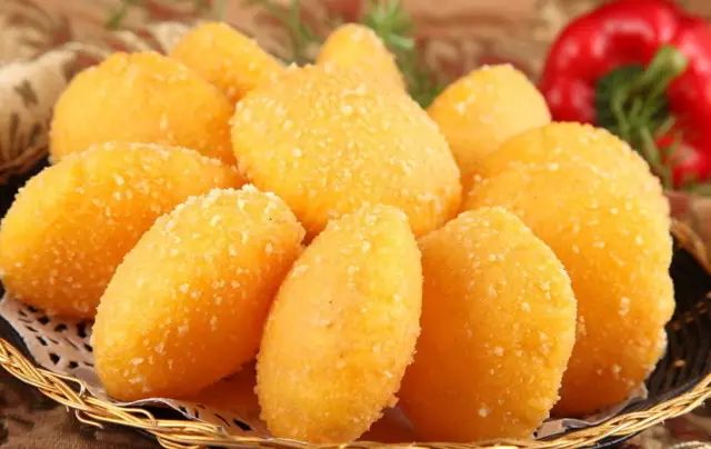 3.南瓜团小球,在面包糠里轱辘辘,就可以了。