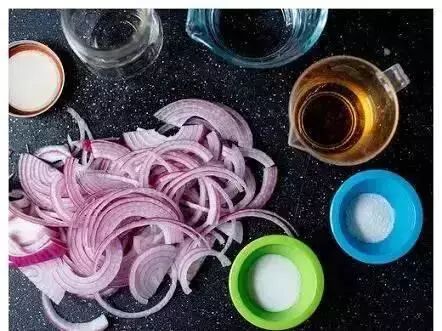 2、洋葱丝加醋、少量的盐、一点点糖提鲜,搅拌均匀即可食用