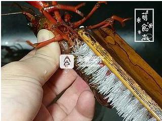 2、小龙虾身体上藏了很多黑色的污垢,尽量用刷子擦洗干净腹部,并用流水冲洗干净,不要图省事。