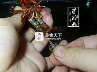 3、去掉小龙虾的肠子,方法很简单,用手掐住尾巴中间那根尾翼左右拧,直到断开为止,然后慢慢拉出来。这样小龙虾的肠子就跟着出来了。