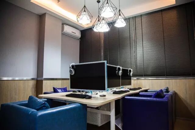 哇擦原来是背着我来网咖…不过现在的网咖都这样了么?有种科幻大片的即视感,全场都透着电竞科技蓝光,还没上机就有种在游戏里身临其境的感脚…