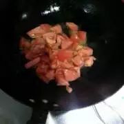 锅内放油,扁炒西红柿,直至西红柿变软