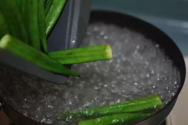 秋葵不要汆烫太久,不要超过3分钟。汆烫的时候锅里放点盐,可以保持秋葵翠绿的颜色。
