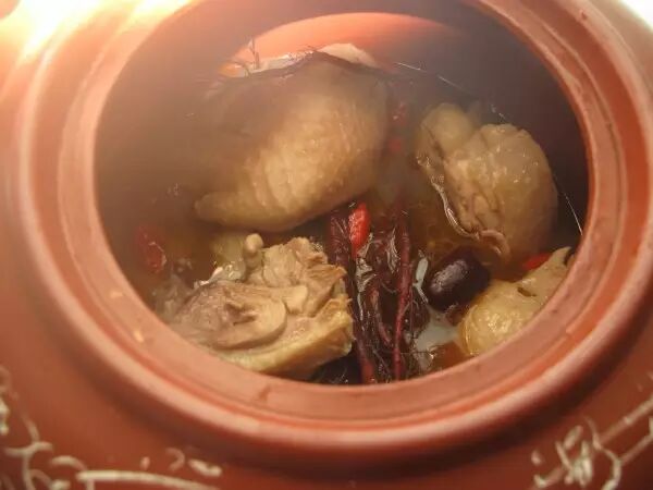 调和气血,改善循环药材:丹参12克、赤芍12克、当归12克、川芎6克、生地12克、甘草3克、茯苓10克、白朮10克、郁金3克、橘红3克、枳壳3克、桂枝9克、红枣5个、枸杞12克药材先浸泡后,煮开五分钟后,将汤汁倒入另一锅中,继续加热沸腾后,加入鸡肉,闷煮至鸡肉熟透,加入适量米酒、盐,沸腾即可。