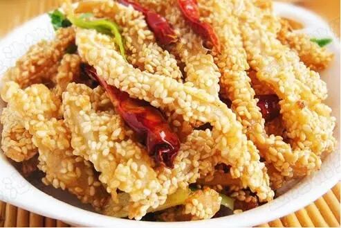 2、炒锅置旺火上,倒入油3汤匙,烧至温热,下葱末、姜末、酱油、糖、醋和少量水,加入藕片翻炒,用淀粉勾芡,淋入花椒油,出锅即可。