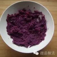 1. 紫薯煮熟去皮捣成泥