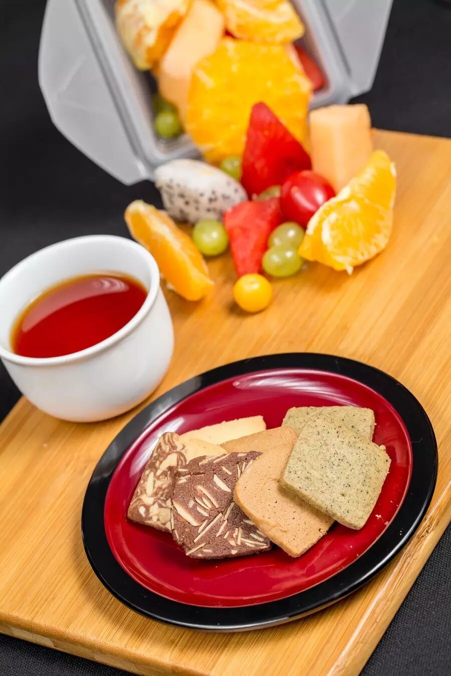 切好的“高逼格”水果拼盘&精美糕点即可送达你的手中。
