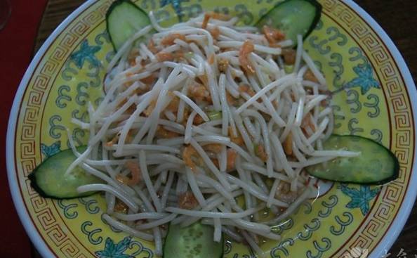 在一旁侍膳的衍圣公很着急,便传话给厨师叫想办法。于是他们把豆芽加上几粒花椒一炒,乾隆吃了说味道不错。经了皇帝口,豆芽在孔府的食谱中,立刻身价百倍,不光是能上大宴席,还成了孔府的传统菜。于是又把豆芽的豆瓣去掉,和小丁豆腐配在一起炒,起名叫丁香豆腐。那厨师还想出一道绿豆芽菜,叫“金钩挂银条”,就是把绿豆芽掐去瓣和根,先炒一下虾米,再把择好的绿豆芽放上,那虾米发红,绿豆芽是银色的。这样的菜,皇宫里没有。乾隆吃得津津有味,所以也成了孔府的传统好菜。