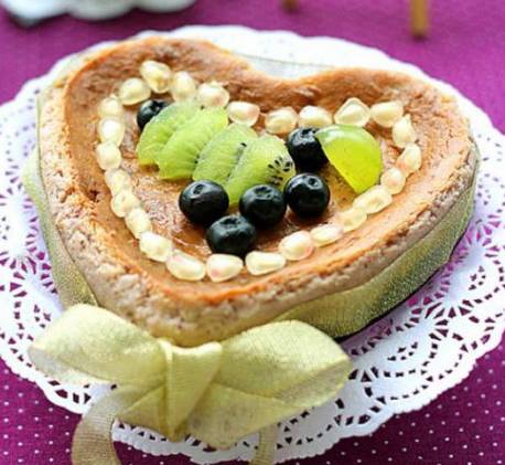 4. 过筛入锅,加入洗净的蓝莓,盖上锅盖先中火10分钟左右,然后改最柔和均匀的小火慢慢烘烤20分钟左右表面凝固即可关火然后再焖5分钟就好了。