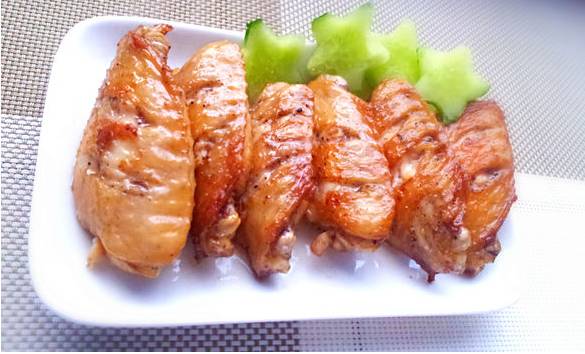 原料:鸡翅中、淀粉、水、黑胡椒、蒜、盐、糖、料酒