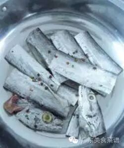 12.煎炸好的带鱼放入。