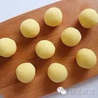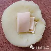 5. 取一小团土豆泥,搓圆后按扁,把芝士包在中间,重新搓成圆球,