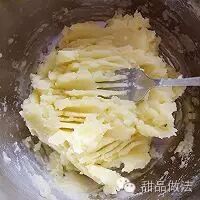2. 蒸熟后用叉子压成泥状,