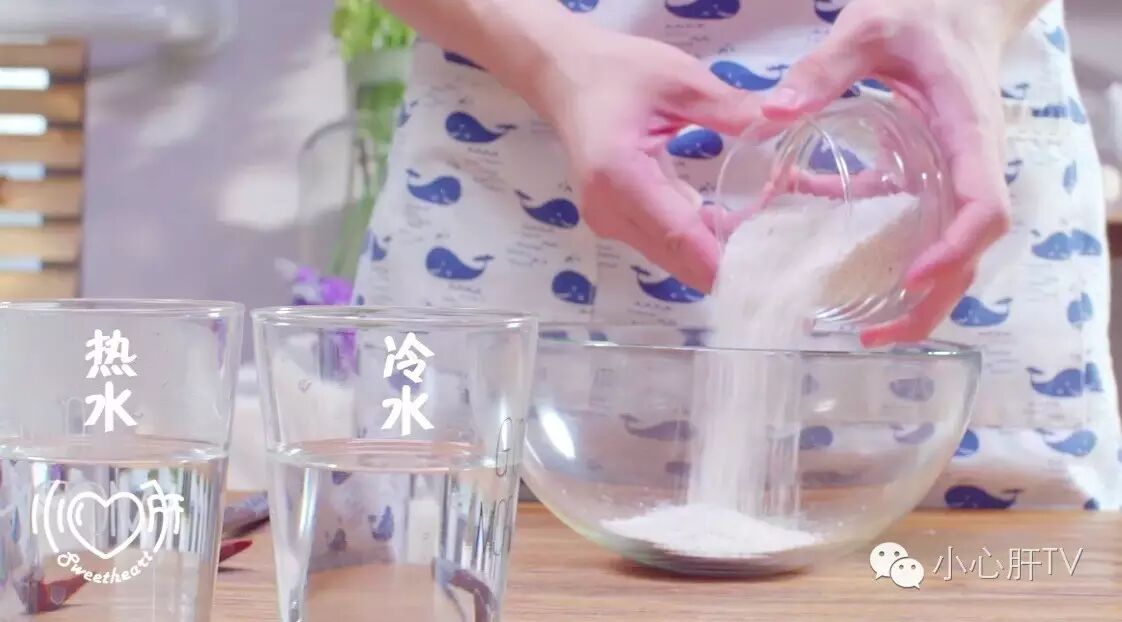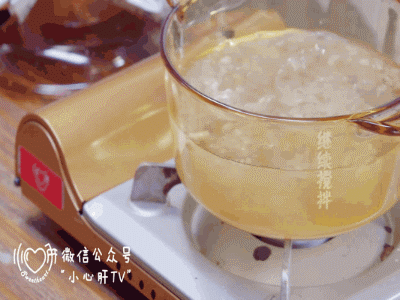 烧一锅热水,将搅好的水晶状的藕粉,倒入热水中。