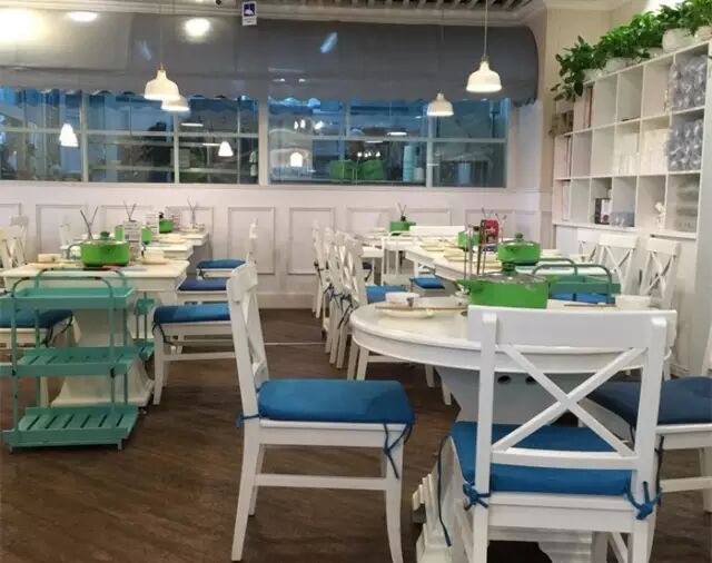 一、餐厅风格清新淡雅,以白色和蓝色为基调,颇有地中海风的味道。