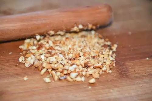 10、最后盛入盘里,撒上白芝麻和碾碎的花生碎即可。