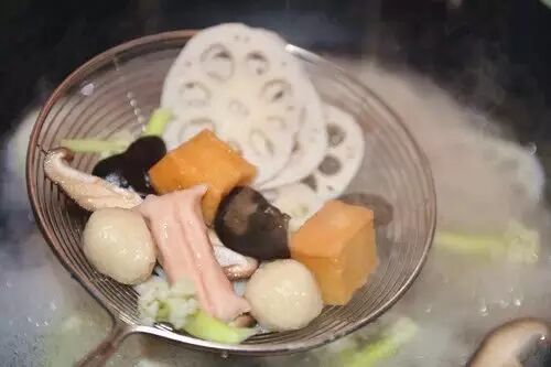藕、菜花、木耳、腐竹、香菇、鱼丸、培根、鱼豆腐、熟白芝麻、熟花生仁(也可以放一些自己喜欢吃的蔬菜)。