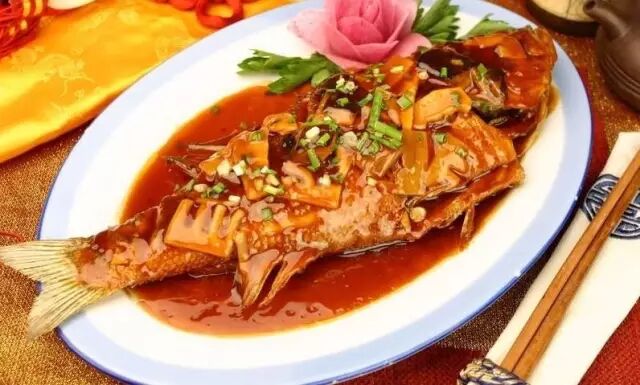 6.从锅中取出碗后,再将炒锅置火上放油烧至十成热,铲起淋在鱼头上即成。