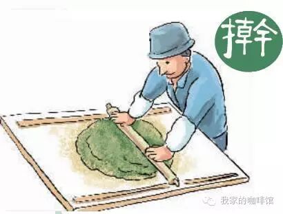 史师傅先用筛子给糯米团撒上一层松花粉,然后拿起一根擀面杖开始慢慢擀这个巨大的青团子。没多久,就擀成了长方形,高约1厘米。
